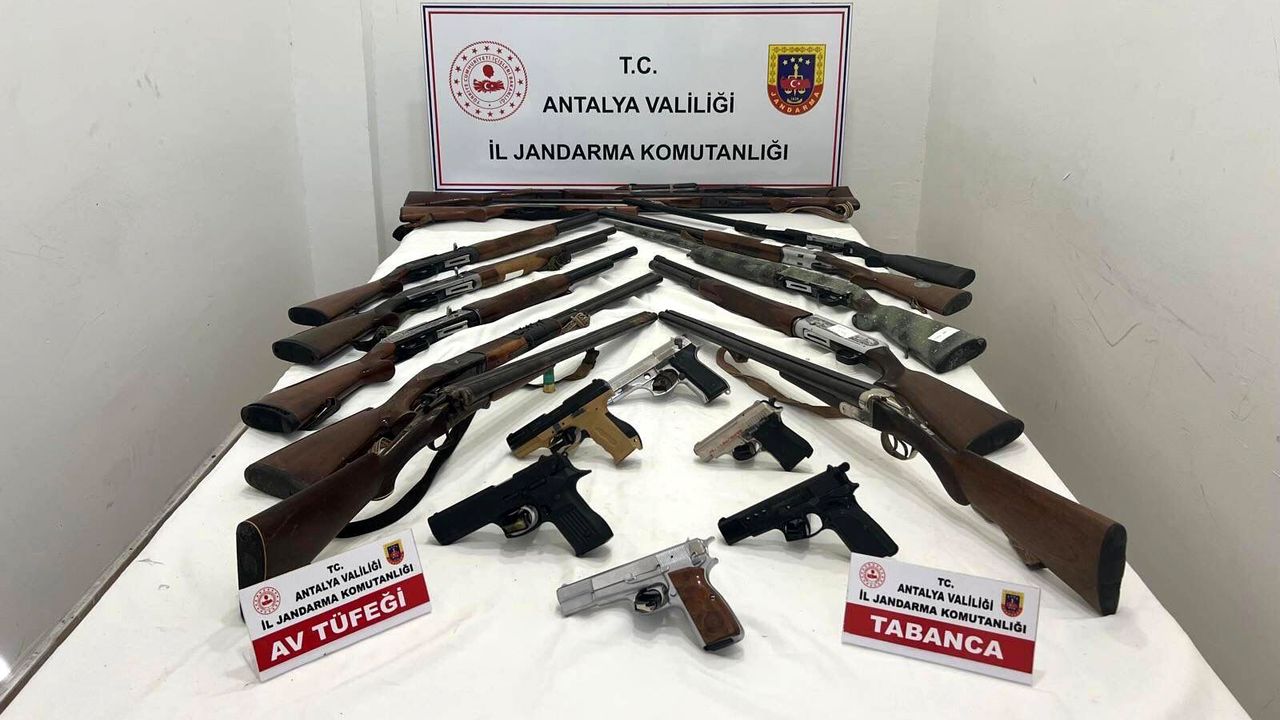Antalya İl Jandarma Komutanlığı ekipleri, Antalya Cumhuriyet Başsavcılığı talimatları doğrultusunda Kepez ilçesinde ruhsatsız silah bulundurdukları tespit edilen 8 şüpheliye ait ikametlerde arama yaptı. Aramalarda; 6 ruhsatsız tabanca ve şarjörü, 15 ruhsatsız av tüfeği ile 50 av tüfeği fişeği ele geçirildi. Şüpheliler hakkında adli ve idari işlemlerin başlatıldığı bildirildi.
